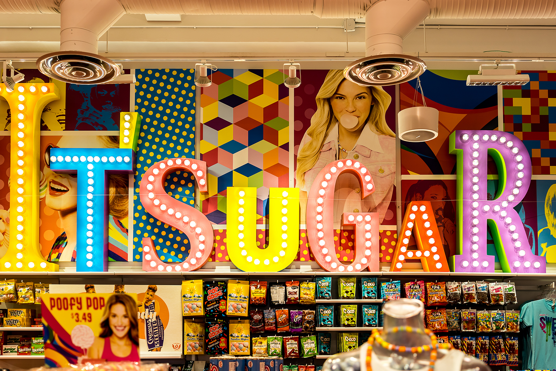 As the place where candy-obsessed come to indulge in the sights, smells and tastes of their favorite sweets and get immersed in the brand’s irreverent voice and fun-loving nature, IT’SUGAR is a different kind of specialty store. Dedicated to bringing out the child in every adult, the brand mixes unique product and merchandise with mega-sized humor and attitude.