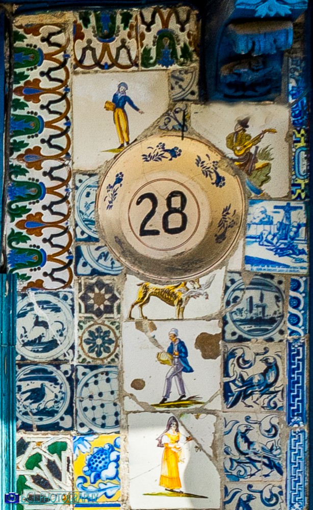 Agustín. Cosas de Arte (Things Art). Compra y Venta (Buy and Sell), found walking Madrid. Interesting tiling and door.