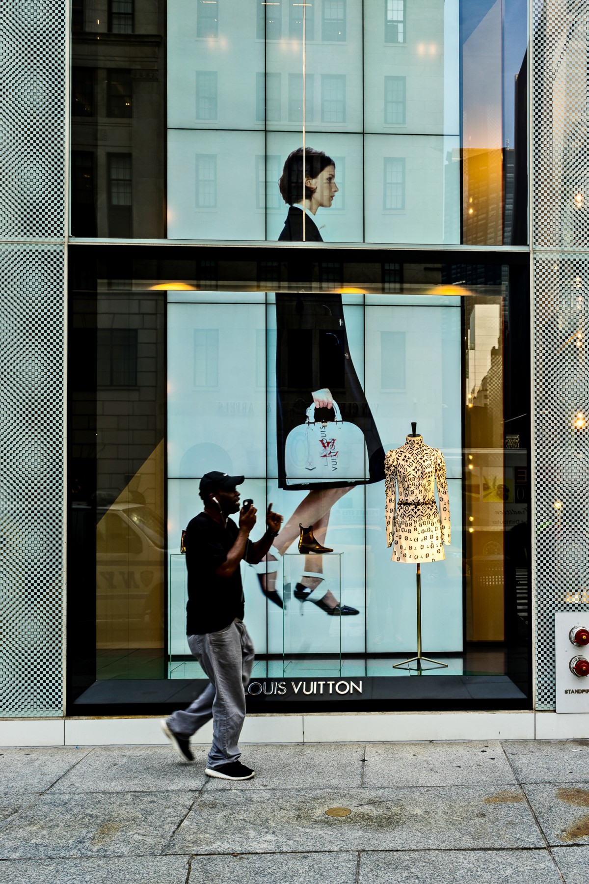 This photo was taken in front of the Louis Vuitton store on 5th Avenue in New York City.